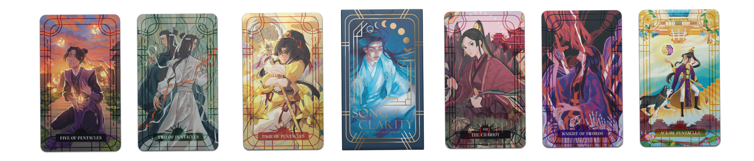 Welcome to the tarot card project: Song of Clarity! We are a collective of artists and fans directing the production of a tarot deck based on Mo Xiang Tong Xiu’s novel, Mo Dao Zu Shi.This deck is inspired by the Gusu Lan Sect’s musical cultivation score “Song of Clarity,” which embodies some of the same intentions we believe can be applied to the art of tarot. We’ve come together aiming to create a deck that not only unites the wonder and beauty of tarot with the story of Mo Dao Zu Shi, but also brings together an artistic team showcasing the incredible creative diversity and talents of others who share our love and passion for the novel.We are delighted to have you along on our journey with this project and are excited to share our vision with you!